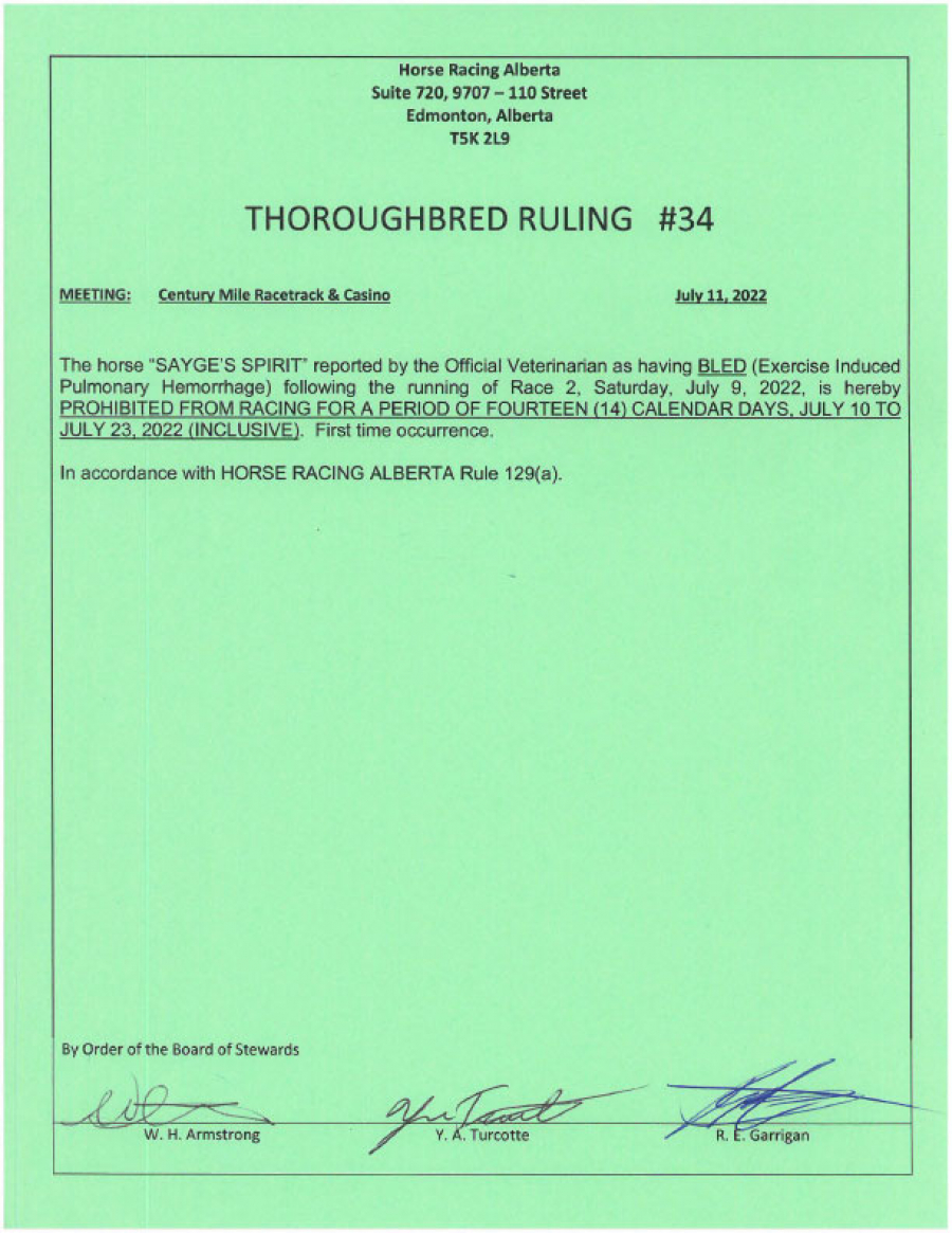 Diagnosed as having bled (exercise induced pulmonary hemorrhage)