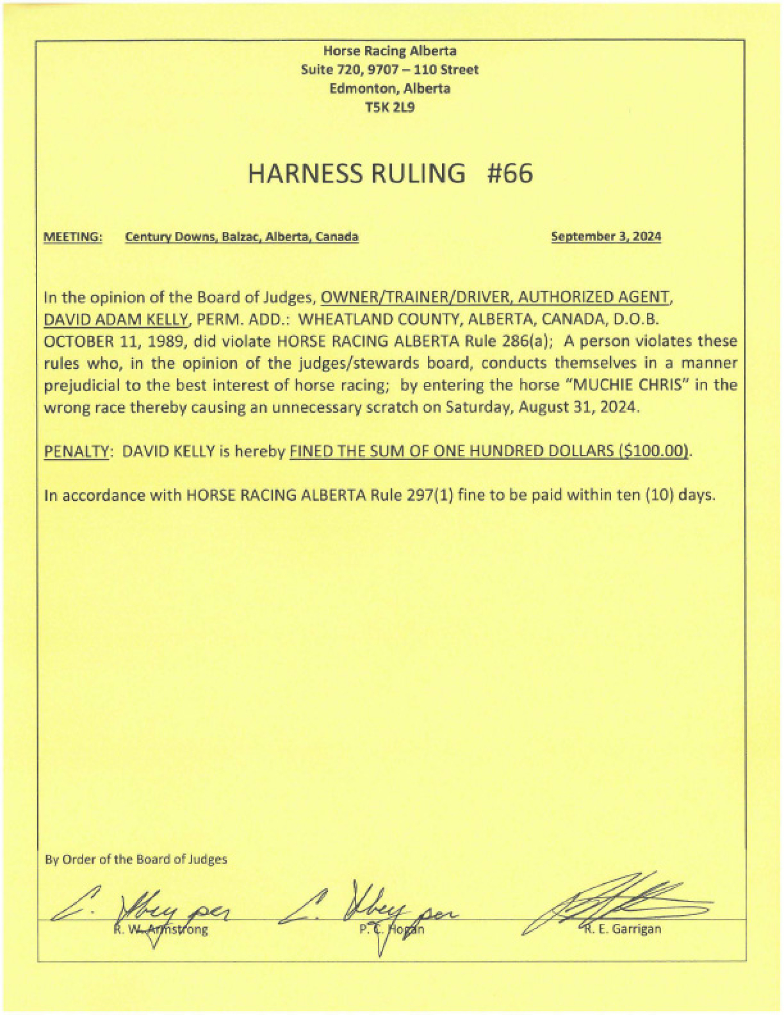 - Infraction: Entry of horse in wrong race, conduct prejudicial to horse racing