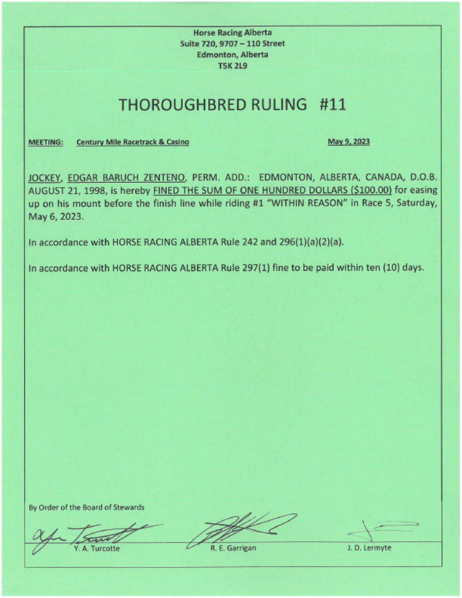 2023 Thoroughbred Rulings