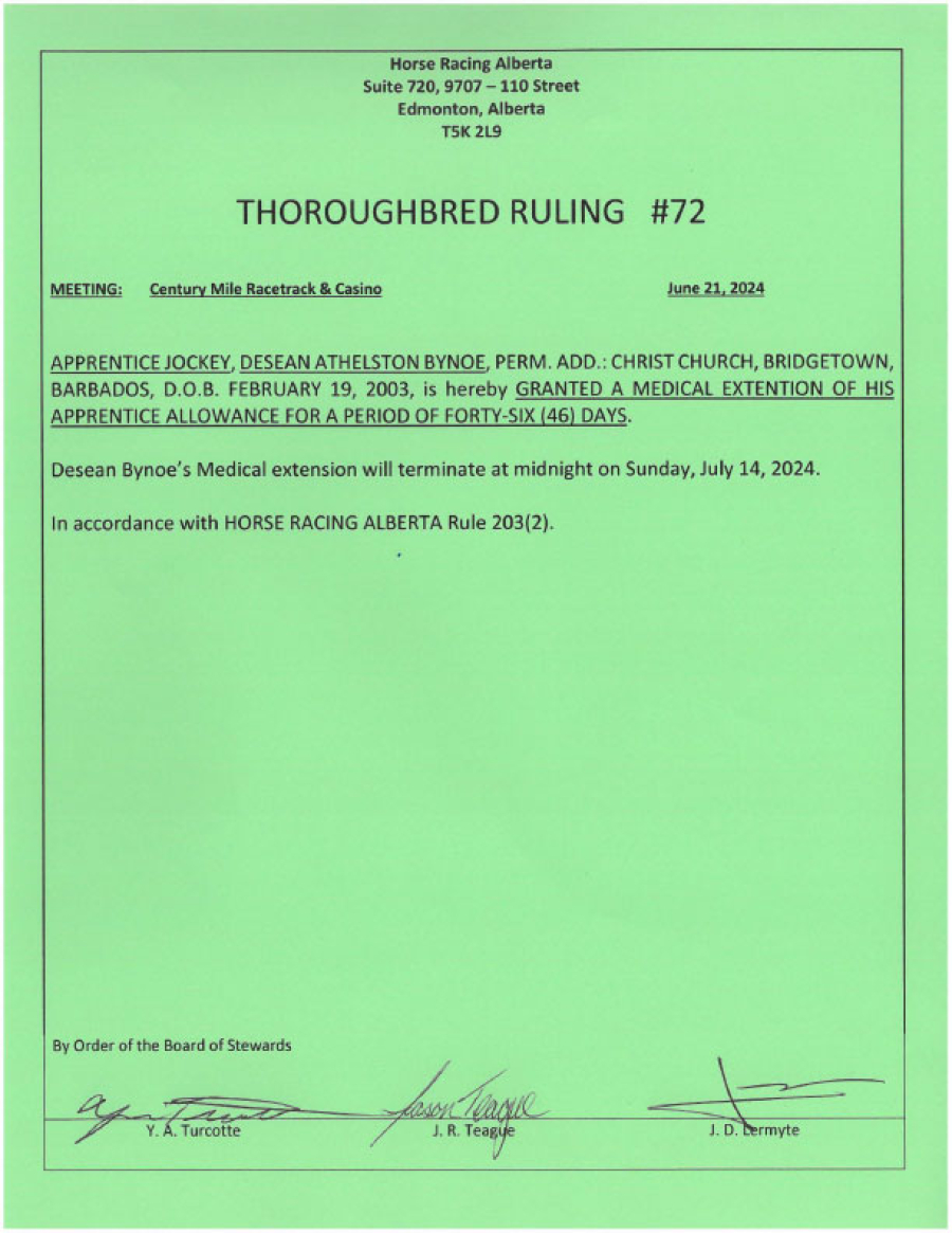 - Judgement: Granted extention of apprentice allowance (medical) (46 days)
