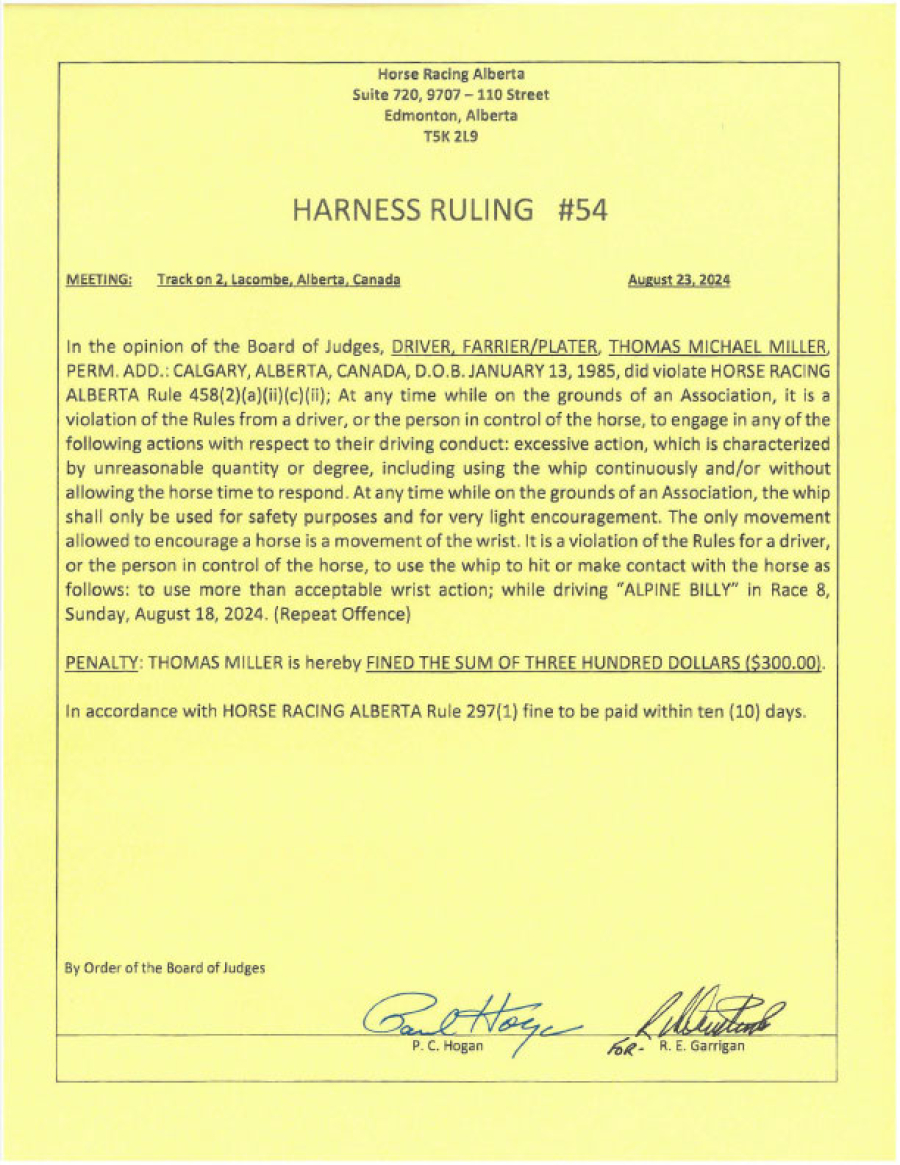 - Judgement: Fined $300 (repeat offence)
