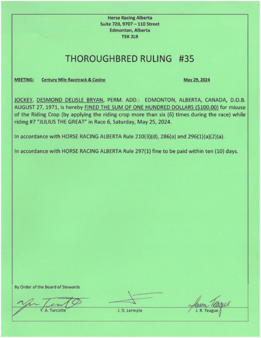 - Infraction: Misuse of riding crop