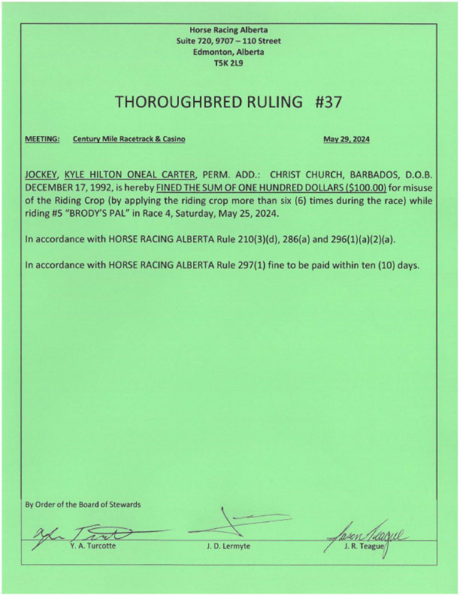 - Infraction: Misuse of riding crop