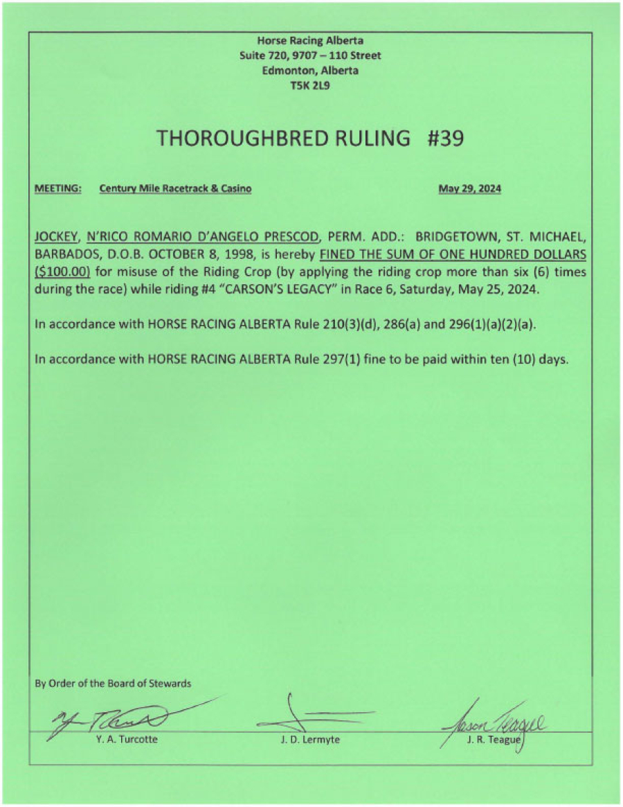 2024 Thoroughbred Rulings