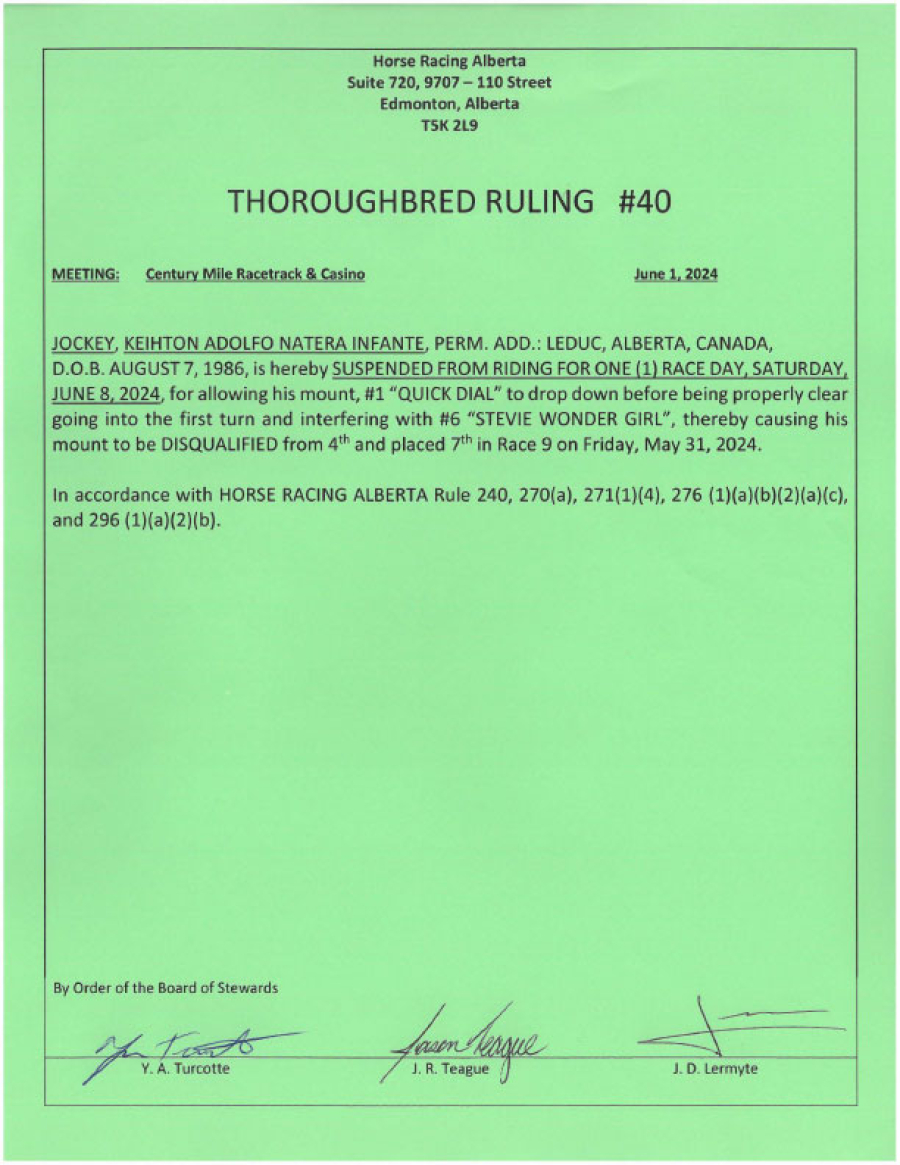 2024 Thoroughbred Rulings