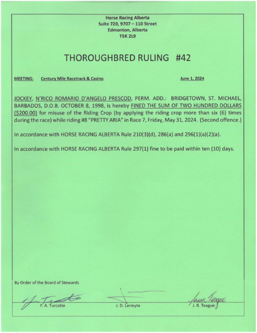 2024 Thoroughbred Rulings