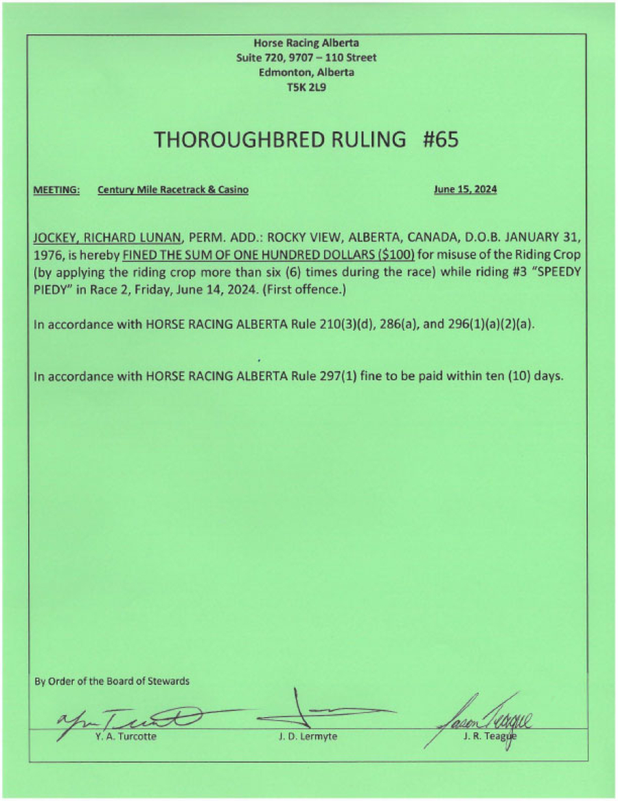 Rule 123 g All Breeds (Equine Infectious Anemia)