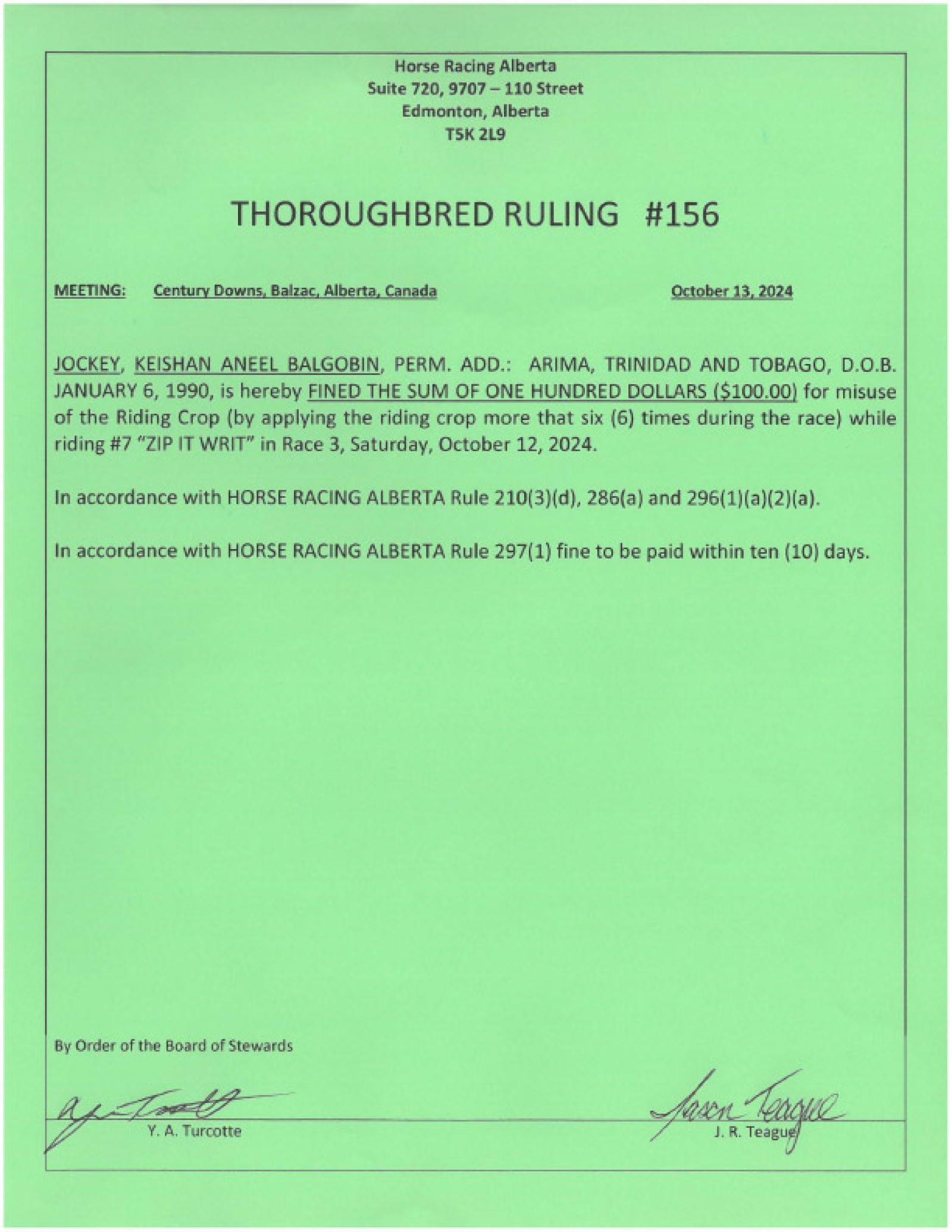 Thoroughbred Rulings Archive